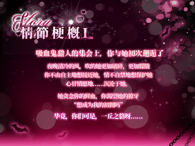 出身吸血鬼的少女,混入了吸血鬼猎人的队伍。她正寻觅着她的下一个血奴。她渴望,她掌控,她占有,与生俱来的本性浇筑了她的血腥,而内心深处扭曲的柔软也铸就了她的独特