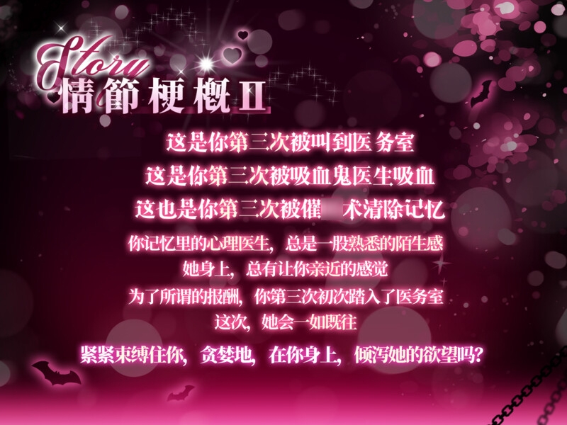 假扮成心理医生的吸血鬼悄悄进入了这所学校。她享受着这种诱导,束缚,吸血,清除记忆的过程,享受着这种,一次又一次,玩弄着从一而终懵懂的猎物的愉悦快感。