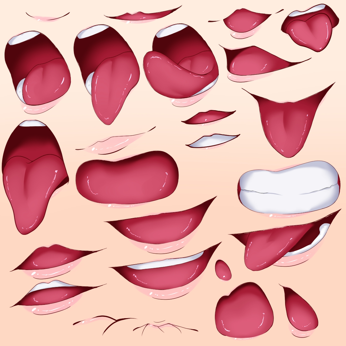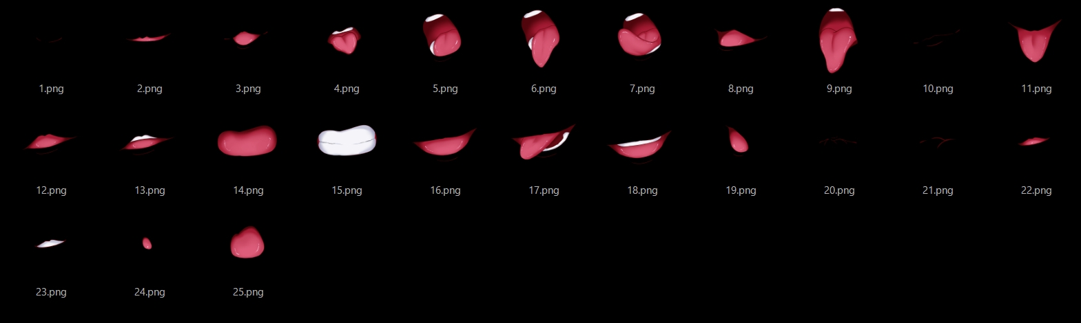 口素材 サイズ1500×1500 PNG 25種 リップありなし 全50枚