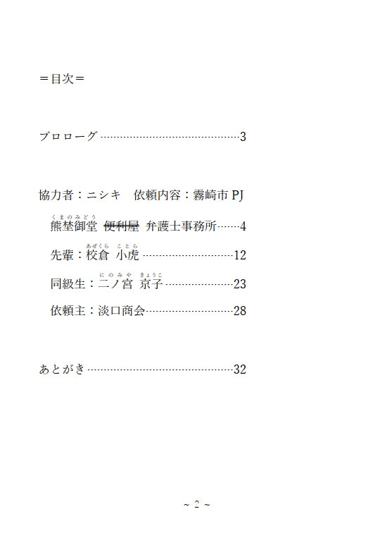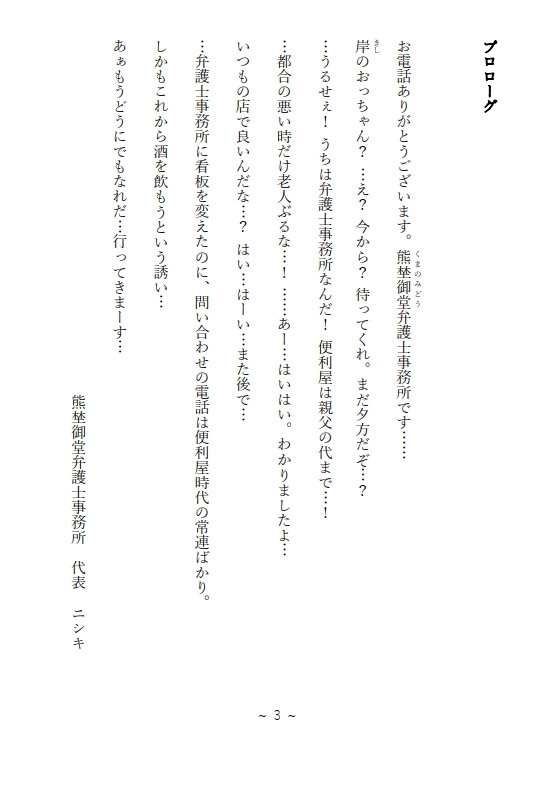 ニシキ…便利屋で弁護士。法律の仕事はほとんどない。