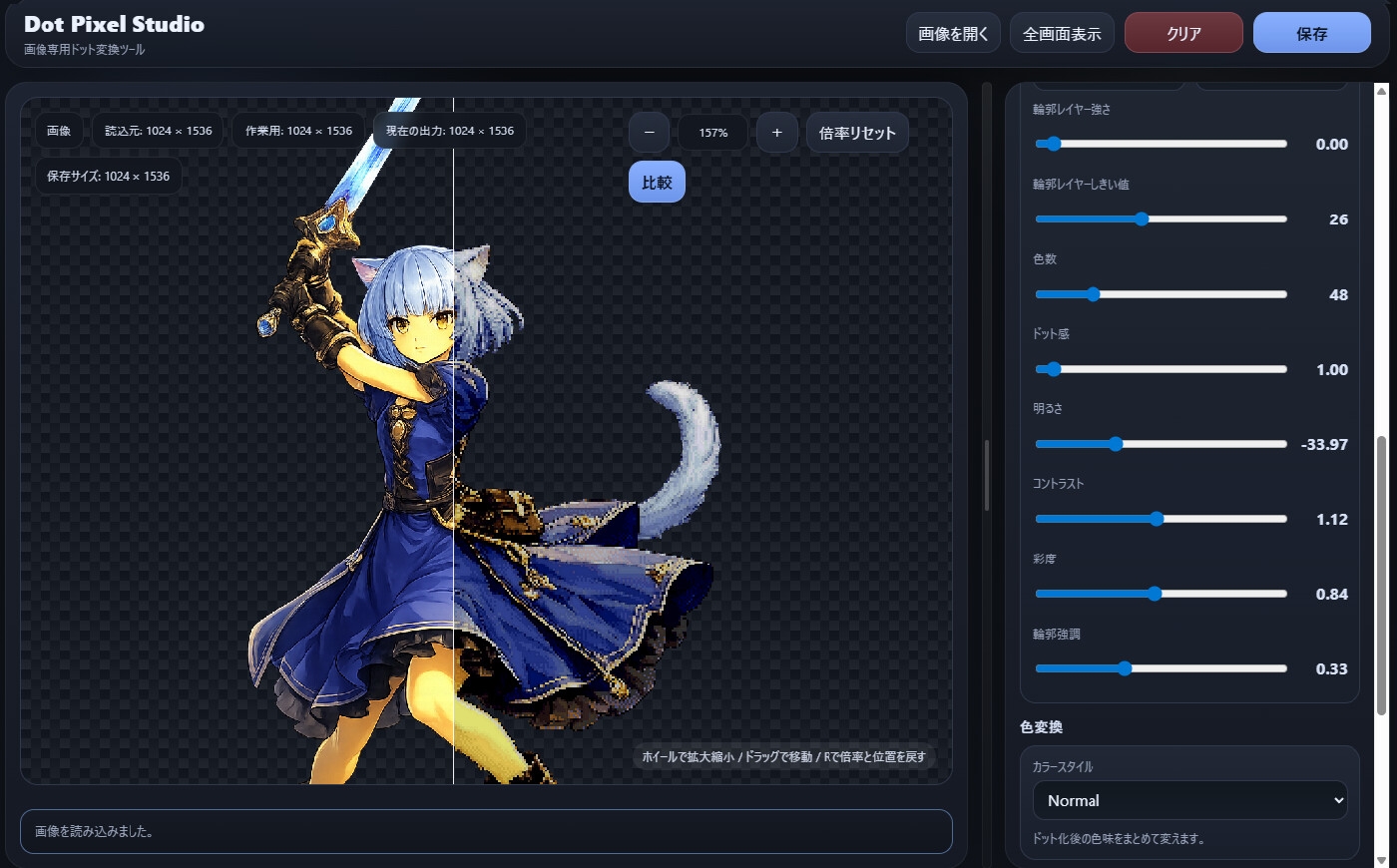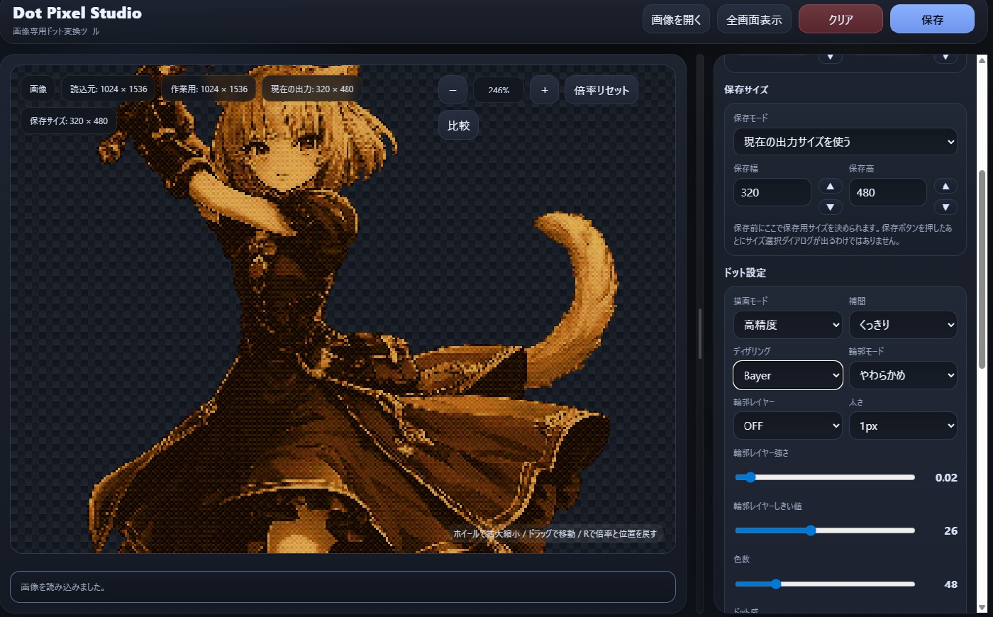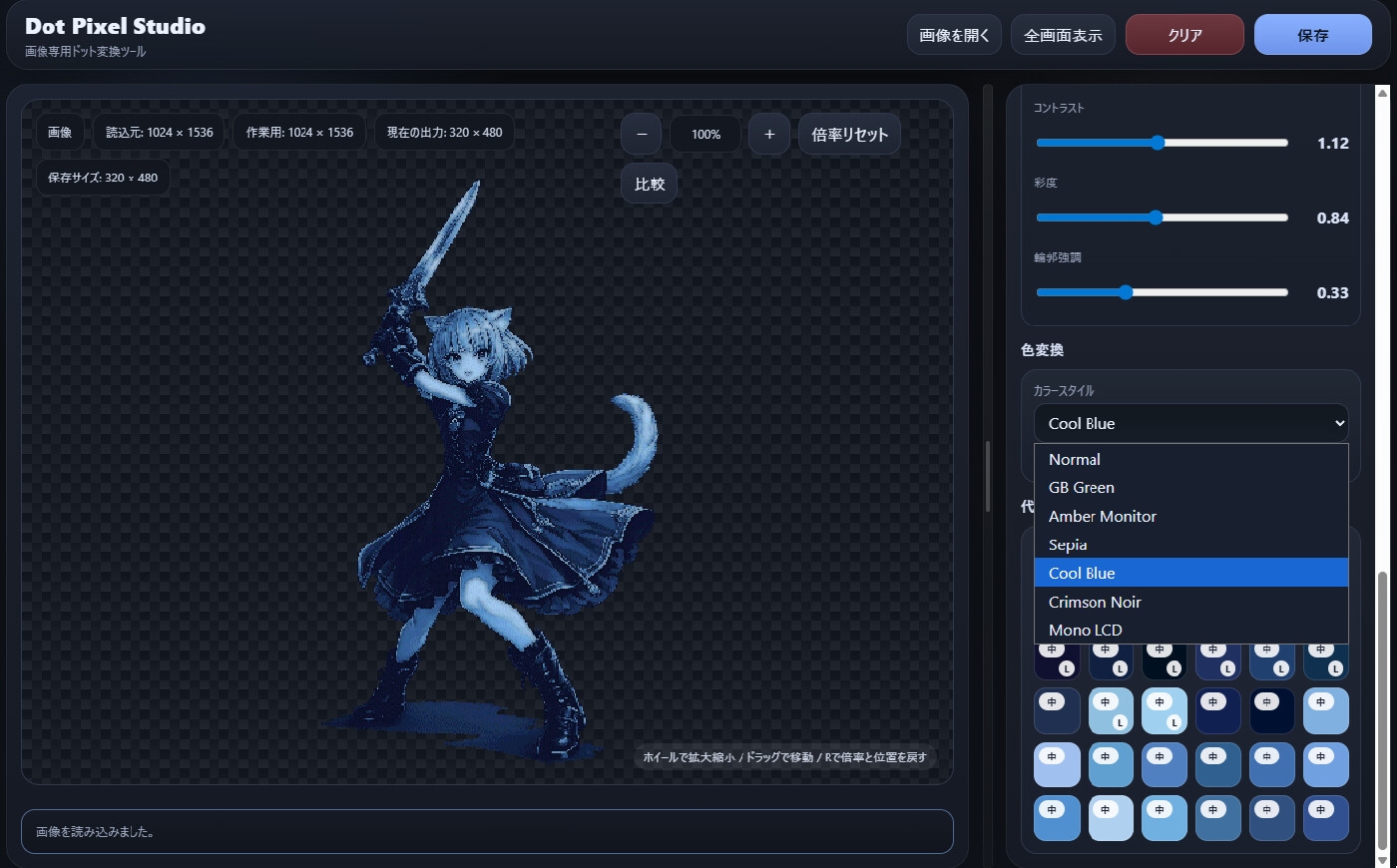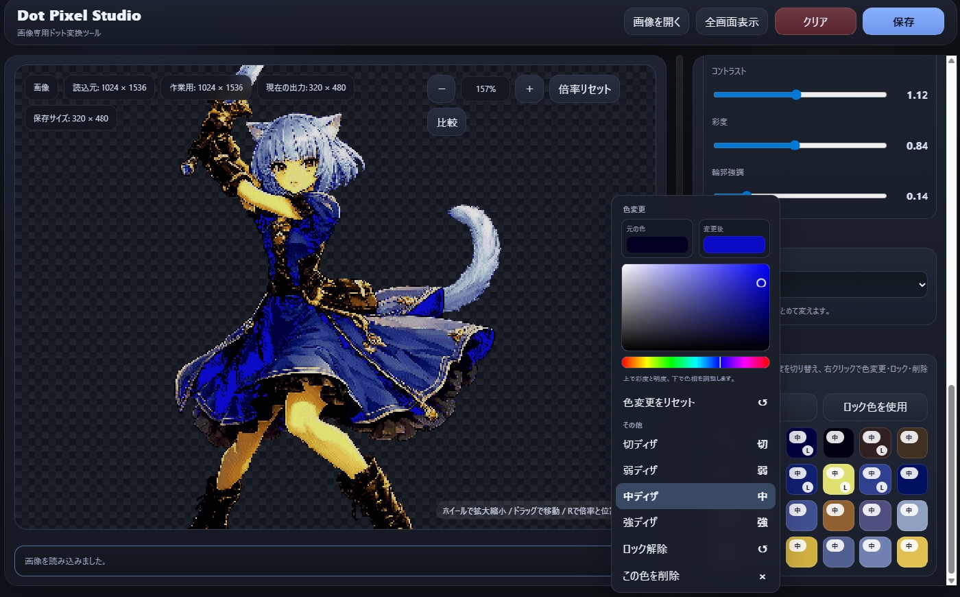 ※パレットはクリックでディザ強度を切り替え、右クリックで詳細操作を行えます。