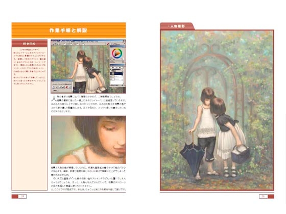 Painter IX の使い方と作品作業過程。またPainterとPhotoshop間での作業で表示色を一致させる、モニタの色と印刷色は何故違うのか?等のカラーマネージメントについての解説本です。