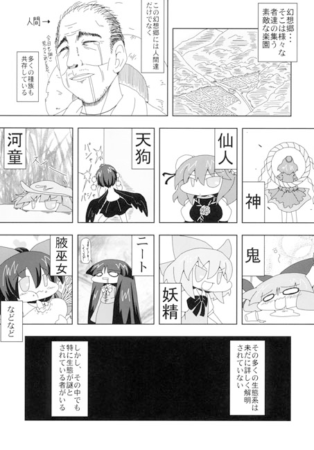 ミスティアの生態を探るべく「みすちー調査隊」を結成した天狗たち。