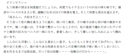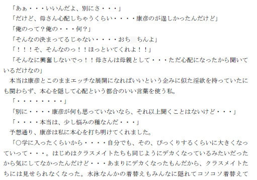 だけど本当の目的・・・、それは、悩みを聞いてあげたいというものではなく、息子と肉体関係を持つことでした。