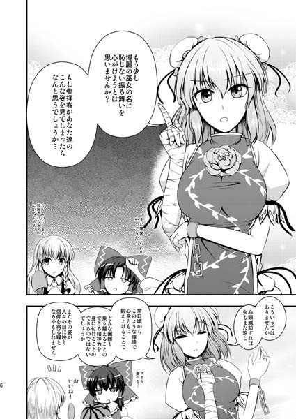 暑さにだらける霊夢と魔理沙のもとへあらわれた華扇。さっそく説教をはじめ…。ほか2本、華扇ちゃんと信仰の関係についてせまる!