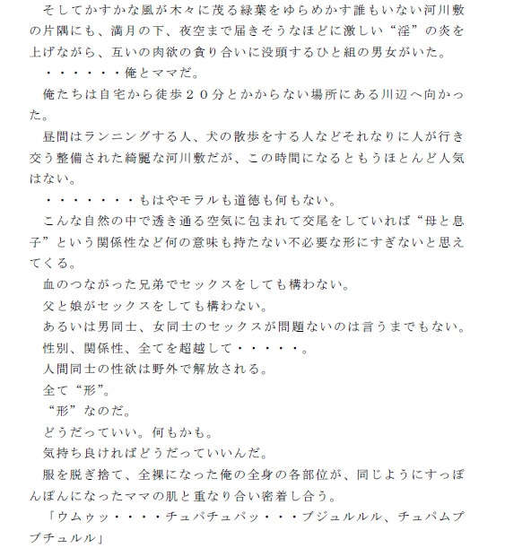 満月の夜に野外で貪り合う母子。濃密で激しいセックスをお楽しみください。