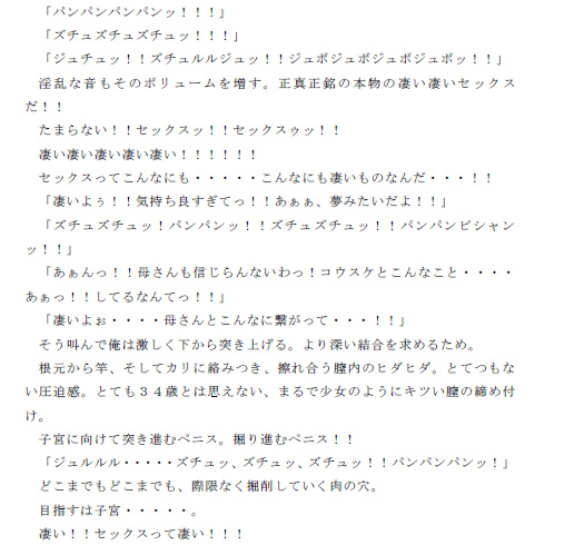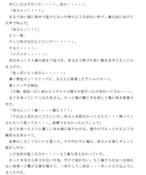 きっかけとなる小さな出来事と一連の流れで、主人公と母親との間に生じ、深まっていった淫らな肉欲。