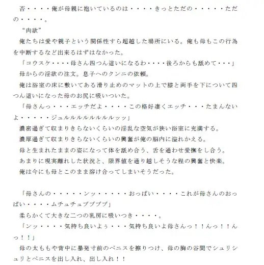 本編は後篇。浴室で行われる母子による激しいセックス。