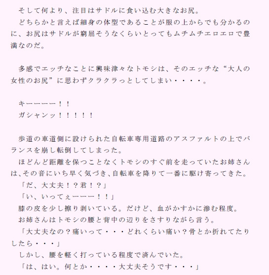 ○学3年生のトモシは、目の前を走る自転車に乗った女性に釘づけになっていた。
