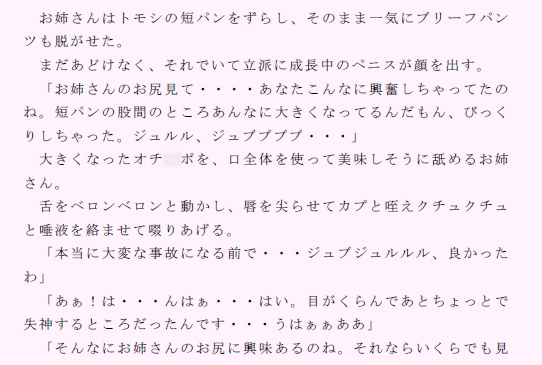 小さな事故をきっかけに、肉体関係になだれ込む少年とお姉さん。