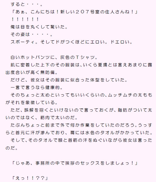 一階の管理事務所に駐在しているあけっぴろげな体育会系お姉さん。