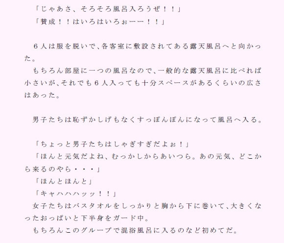 とある幼馴染の○学生男女混合グループが温泉へ行こうという話になり、電車で遠くの温泉宿までやって来た。
