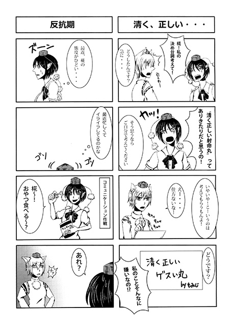 咲夜は能力を使い美鈴にセクハラしたりといろんなキャラが様々なシチュエーションで絡む4コマ作品。