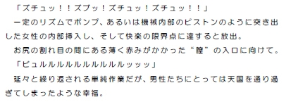 自分の目の前に送られてきた女性の穴に挿入し、精液を注入するというシンプルなものだ。
