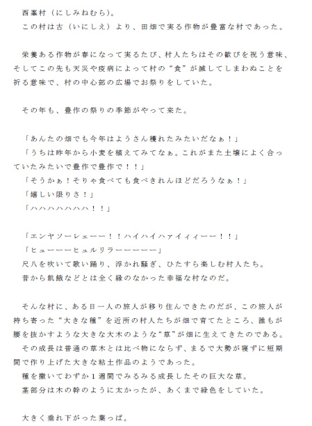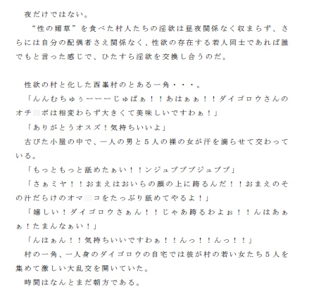 村人が村に残したのは、食することで三日三晩休むことなくまぐわい(セックス)に