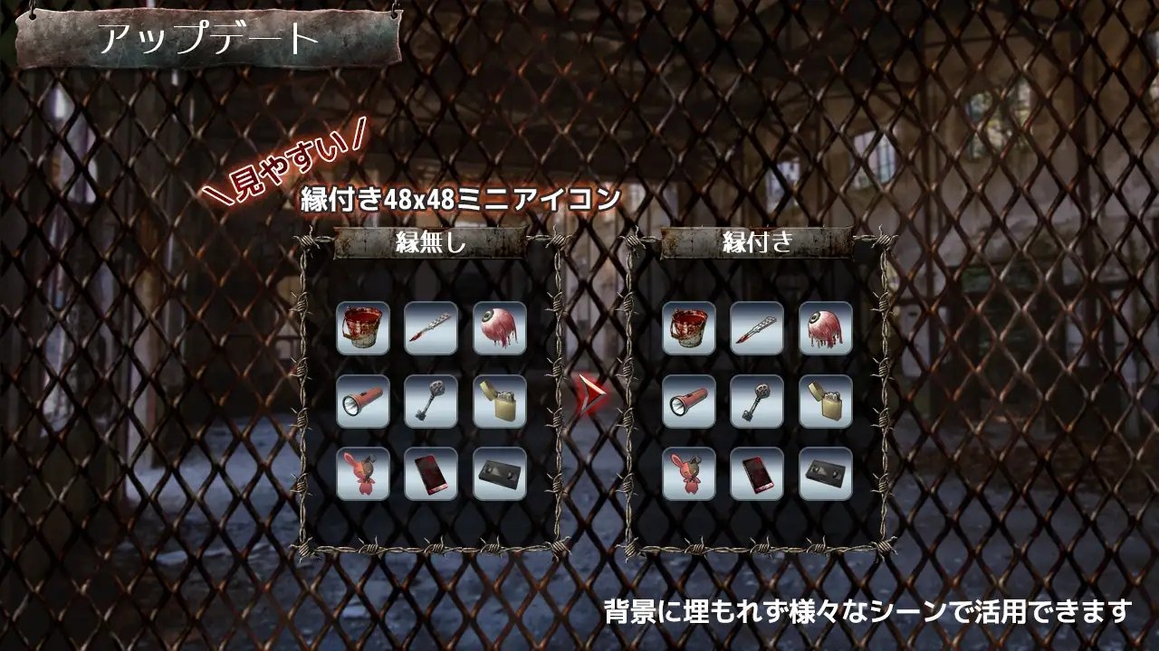 夏だホラーだ!血みどろだ!ホラー探索系ゲーム向け高解像度GUI、イラストアイコン素材集です。