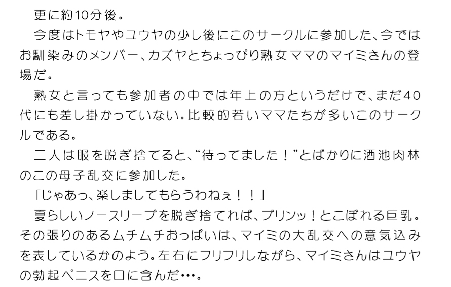 とにかくママというママの穴という穴を舐めまくろう”というコンセプトのサークルだ。