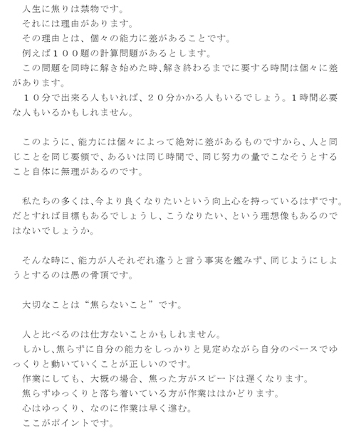 マイペースを阻害してしまう焦りの気持ちで苦しんでいる方へのエッセイです。