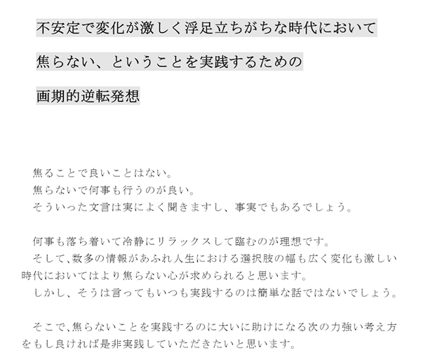 そこで、焦らない心を持つためにはどうすればいいのか?