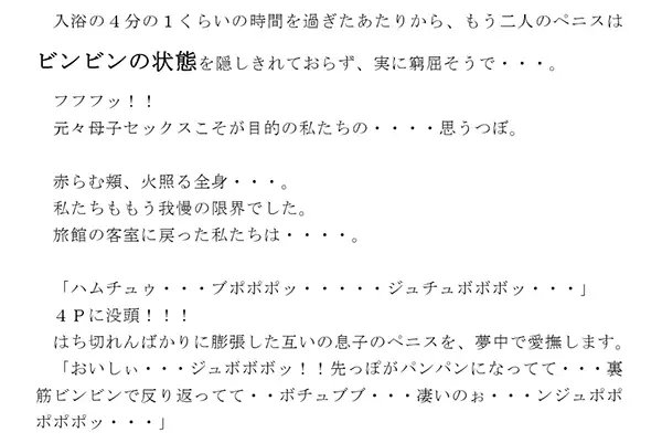 混浴露天風呂で、互いの息子の成長したペニスを凝視する母親たち。