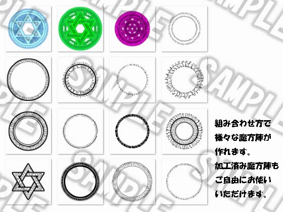 加工の素材13枚とそのままでも使える加工例3枚を入れた素材です。