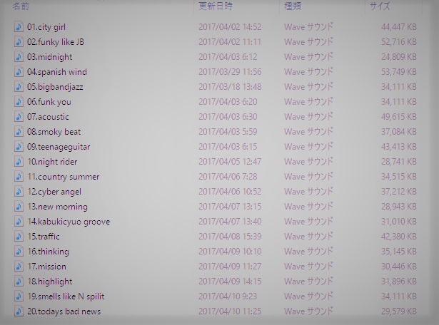 何かと使えそうなジングル21ファイルはwav,mp3それぞれの形式で収録してあります。