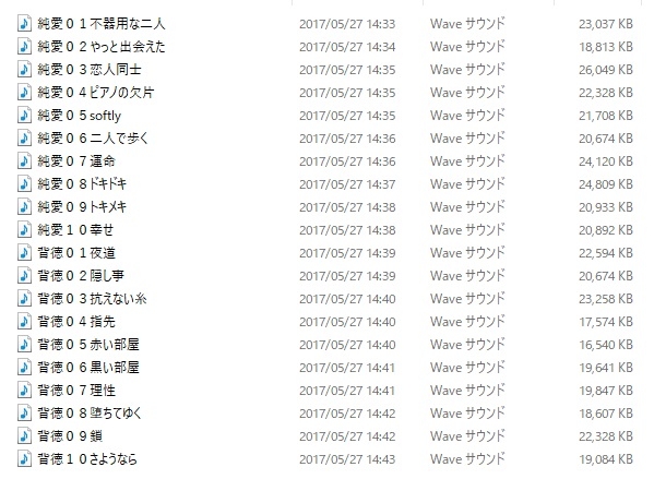 純愛系イベント、背徳系イベントを想定して各10曲ずつ合計20曲。