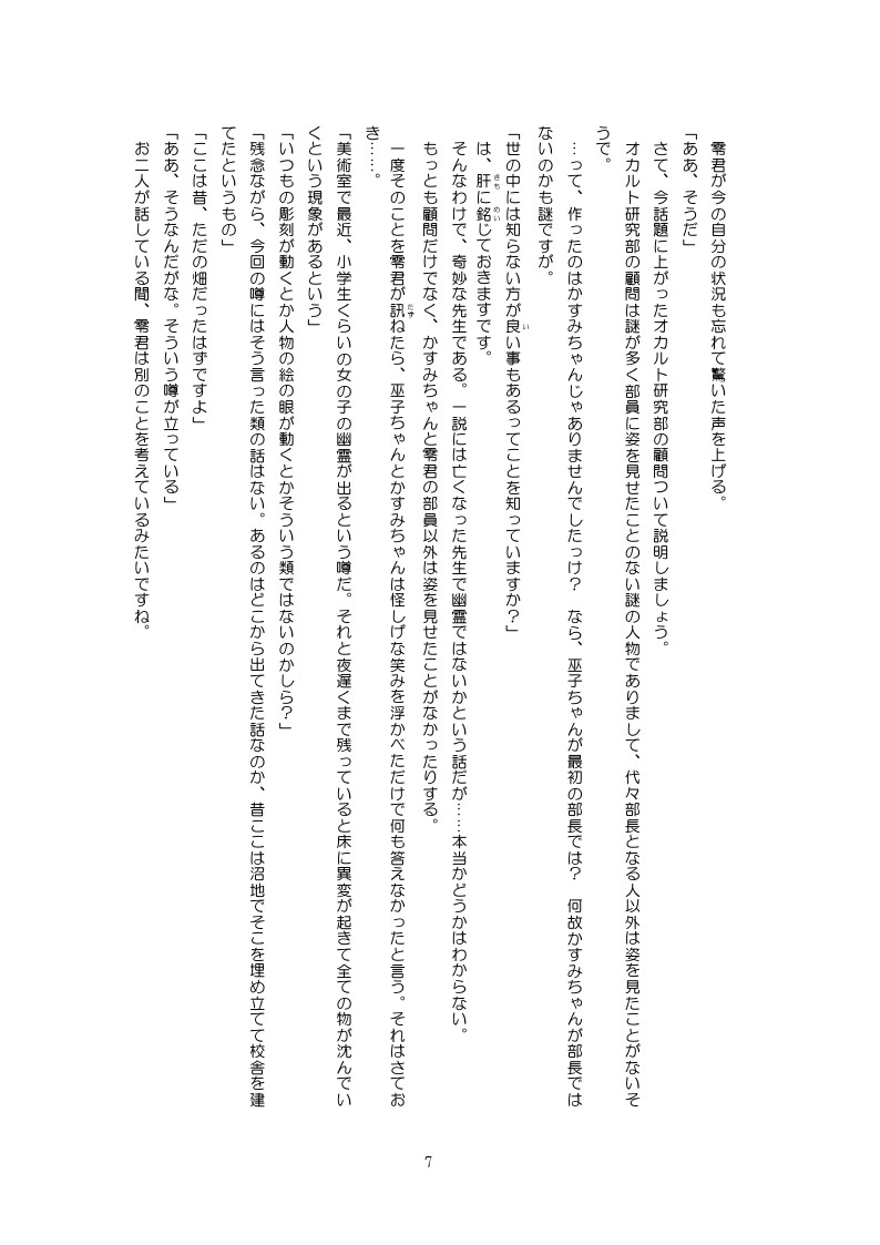 全編26ページで、オリジナルの(ギャグあり)学園オカルト小説です。