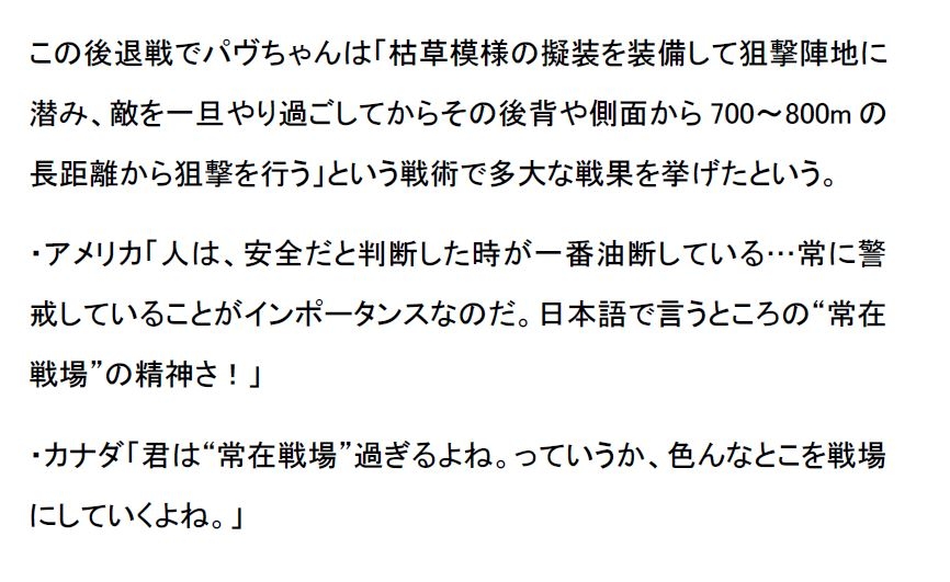 リアルチートなスナイパー・狙撃手を紹介する内容です。