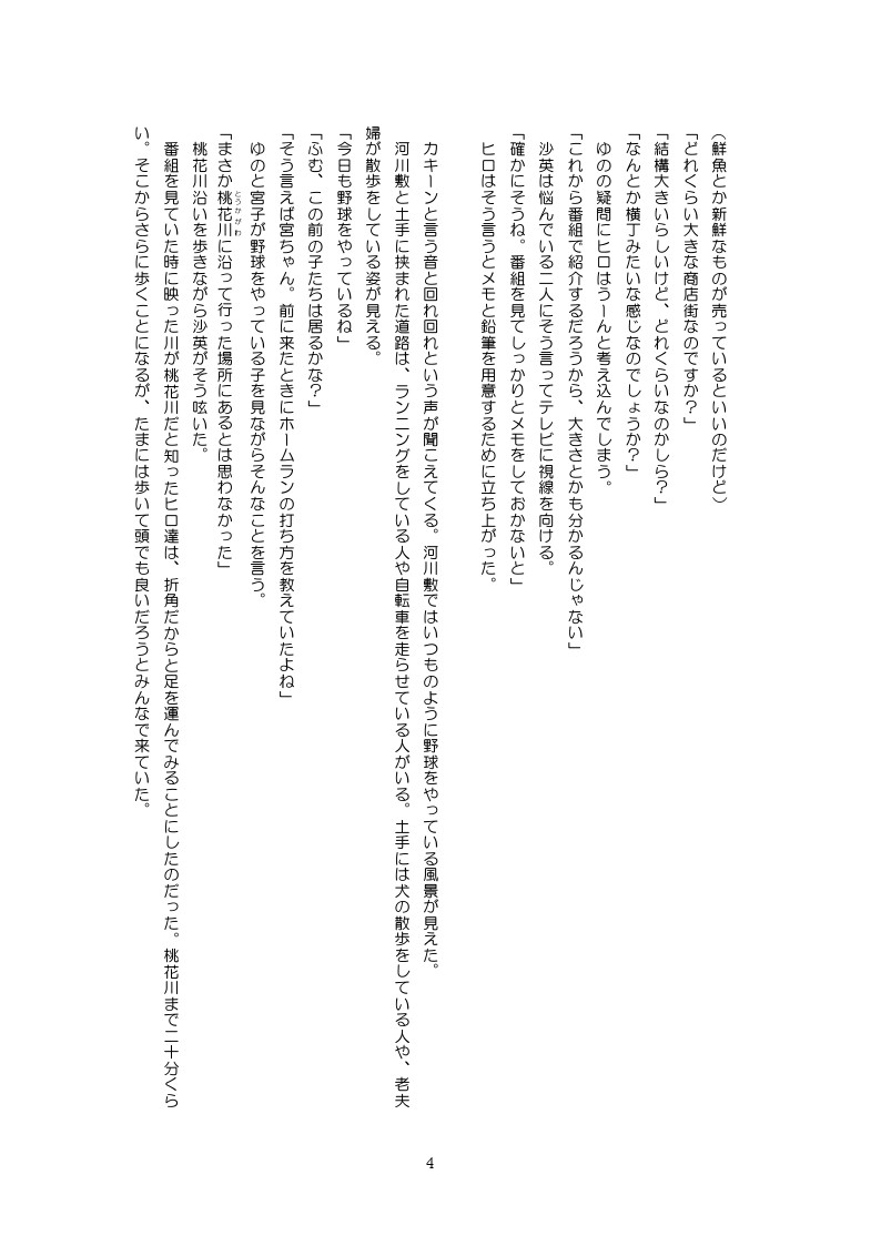 ヒロがメインの話で、テレビを見ていたときに見た商店街に四人で行くことに。