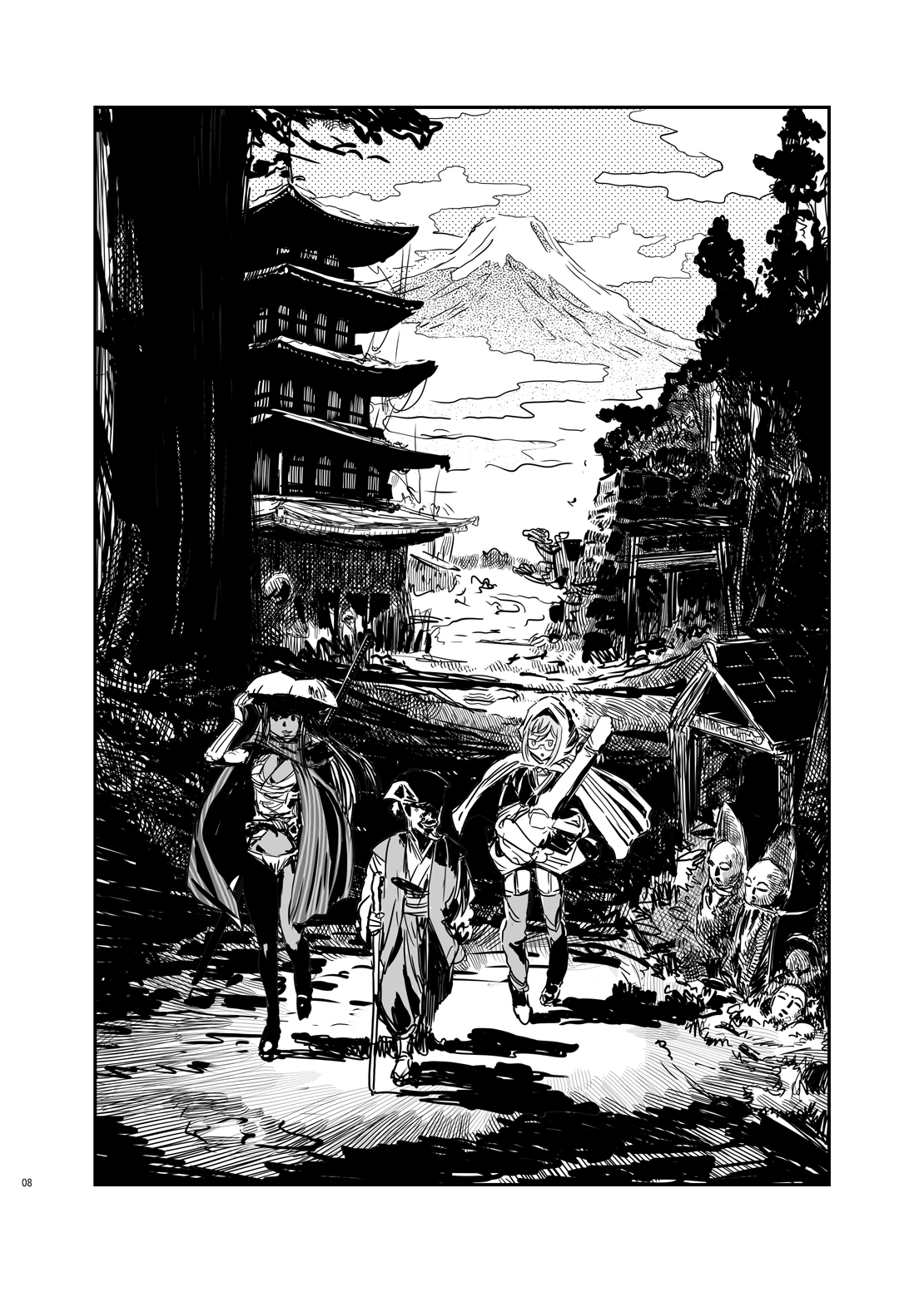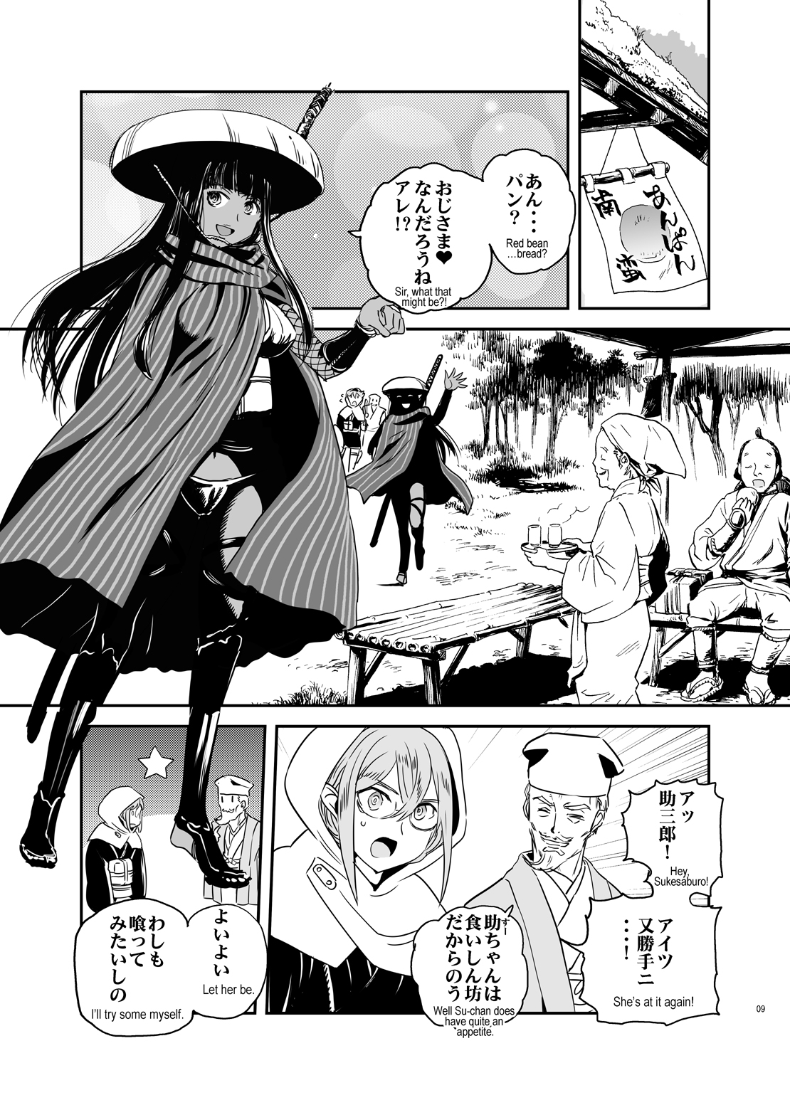 美姫尼具足(びきにぐそく)の褐色忍者に、長耳のめがね銃士。