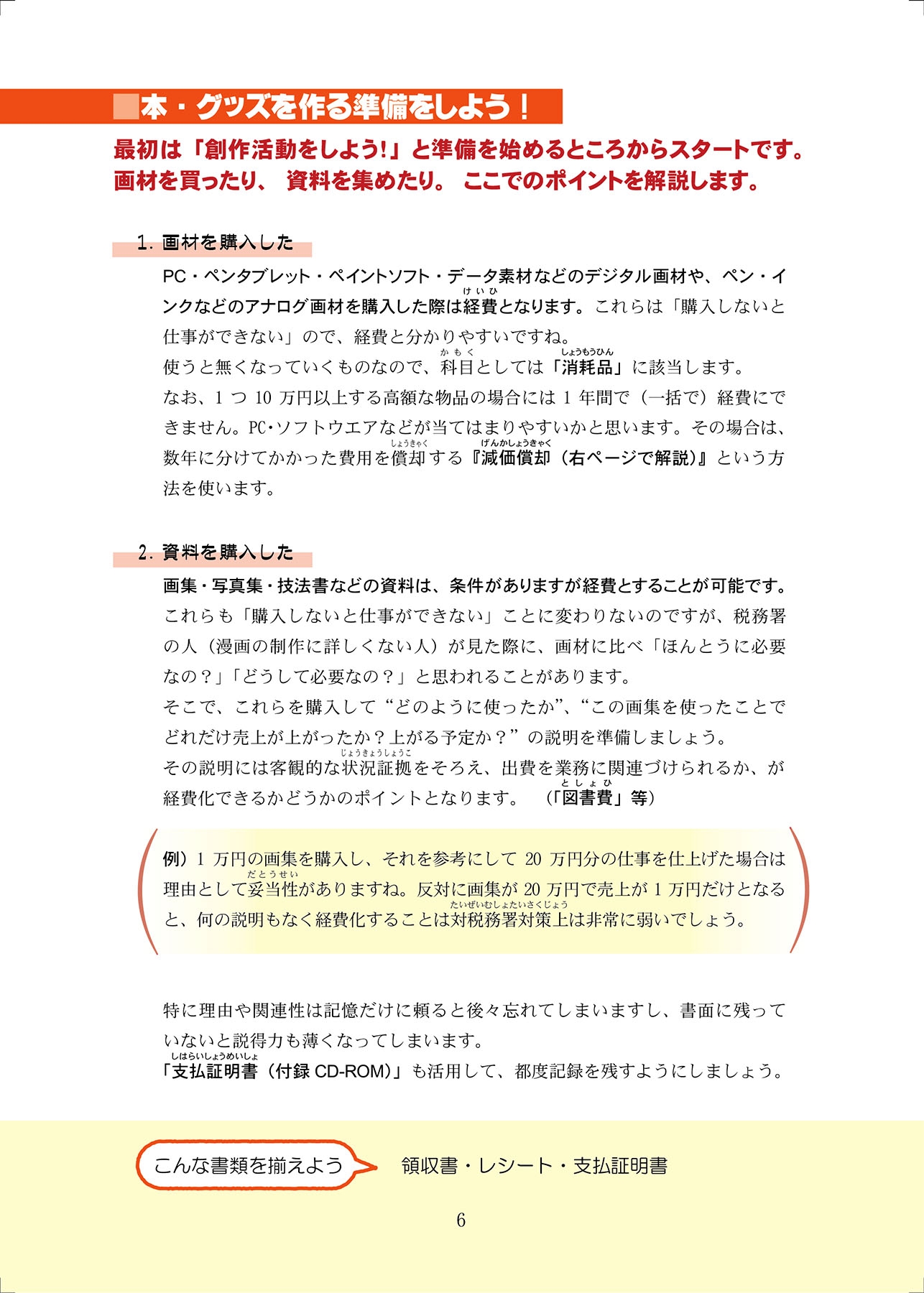 「どんな書類や証拠を残せばいいの?」「これって経費になるの?」など同人活動にまつわる様々な疑問やポイントを、図解や漫画をまじえて時系列で解説します。