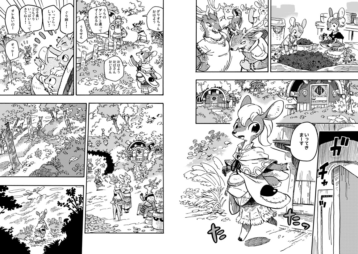シカ族のナワバリ「ディアバレー」の女の子グリオはどんぐり隊の仲間といっしょにどんぐり拾いに森へ出かけます。