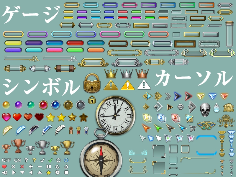 記載したい場合は「ファンタジーゲームUI 画像素材集」など、