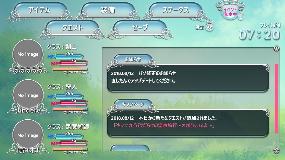 ※サンプルのマップ背景やキャラチップ等は同梱されておりません。