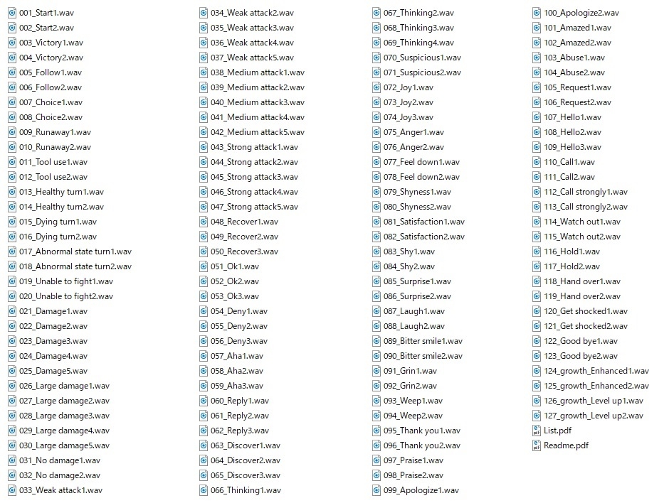 ・会話ボイス 全77ボイス(挨拶・笑う・相槌・怒るなど)