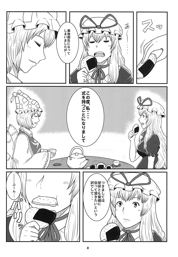 紫の式神である藍が式神を持つと聞き、どこか気持ちが落ち着かない紫。