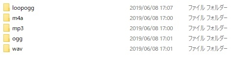RPGツクール等ですぐに使えるようにwav mp3 ogg m4a loopoggのそれぞれの形式にて収録しています。