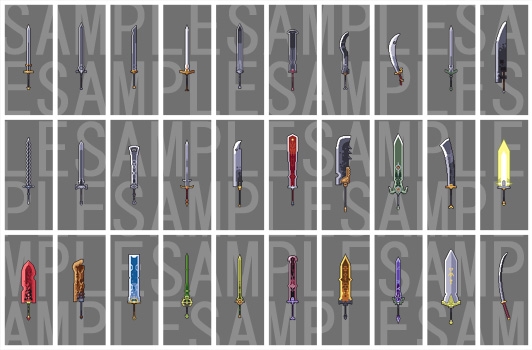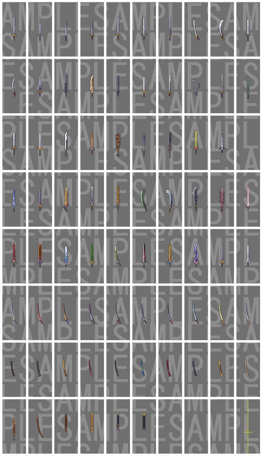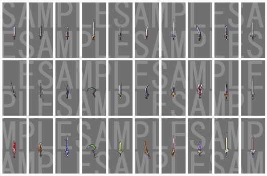 100*100pix前後のキャラクター画像に合わせる事を想定とした武器の画像集です。