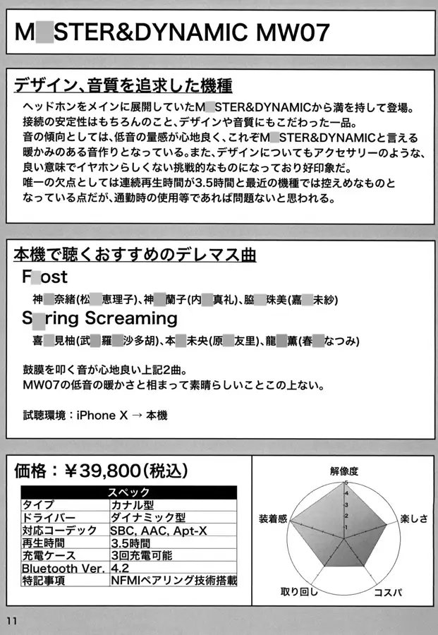 各イヤホンで聴くおすすめのデレマス曲の紹介やイヤホンを着用したまゆのイラストを収録しています。