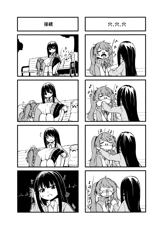 ちょっぴり人外な女の子二人が織りなすシュールサイレント4コマです。