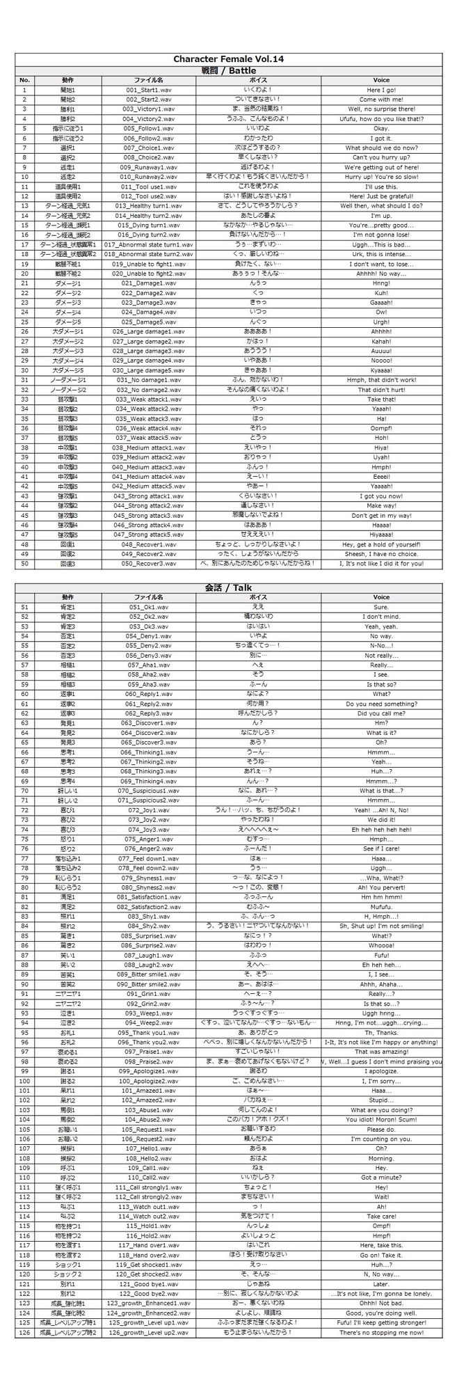 ・戦闘ボイス 全50ボイス(攻撃・ダメージ・回復など)