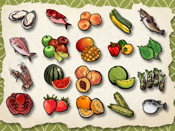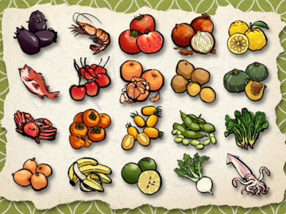 A set of Japanese food icons.