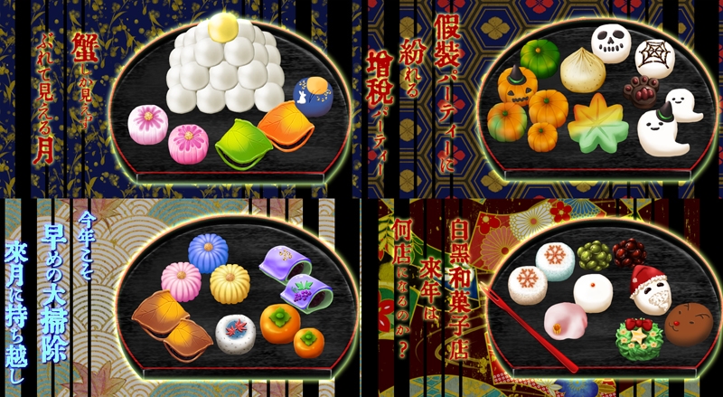 練切を中心に様々な和菓子のイラスト素材集です。