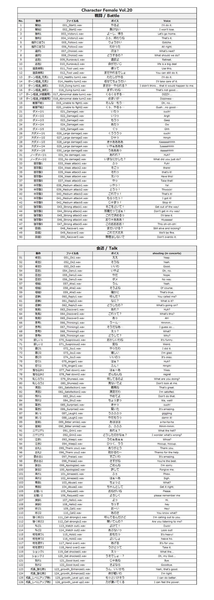 ・戦闘ボイス 全50ボイス(攻撃・ダメージ・回復など)