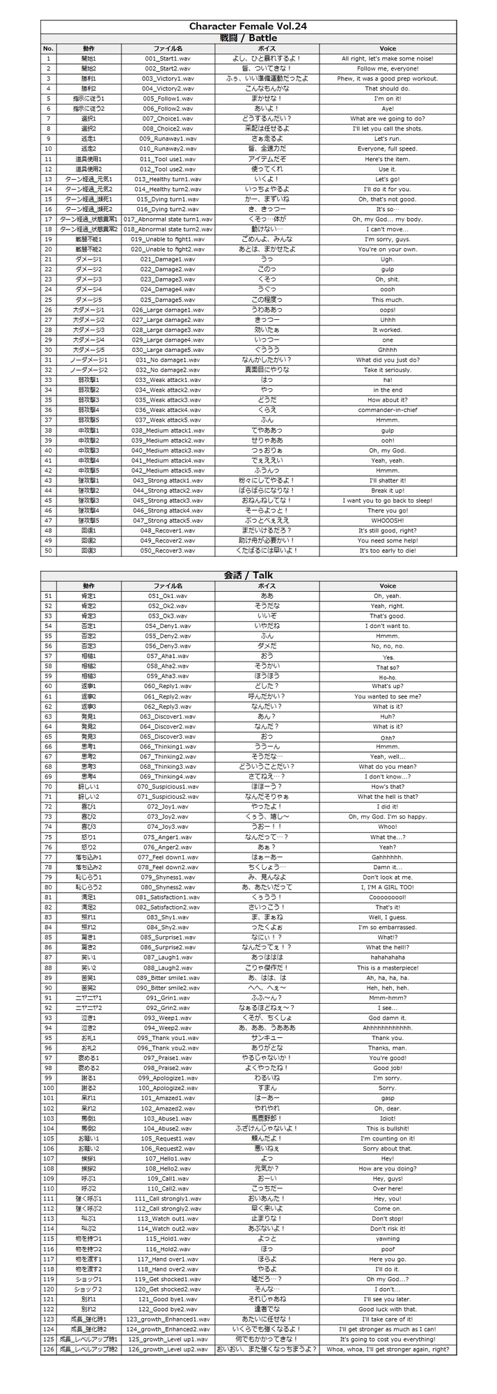 ・戦闘ボイス 全50ボイス(攻撃・ダメージ・回復など)