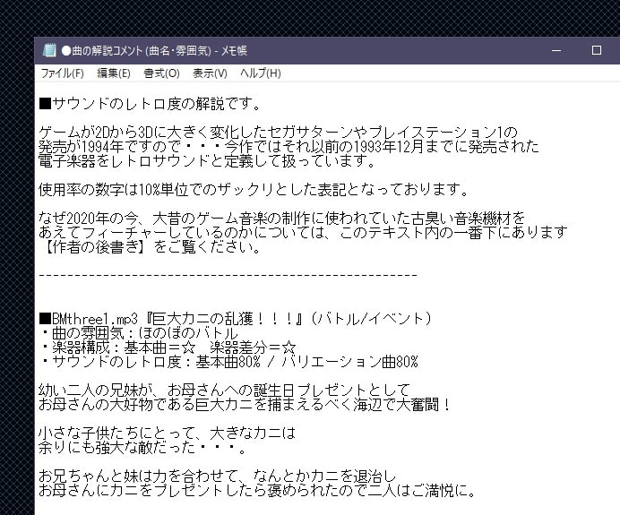 少しでも解消するべく1つの音楽でテンポや音階を変えた差分と