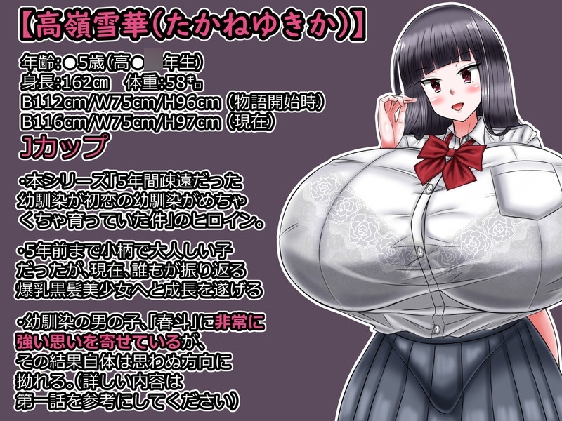 疎遠になっている間に黒髪爆乳美少女へと成長を遂げた「高嶺雪華」と彼女の幼馴染「愛場春斗」の物語