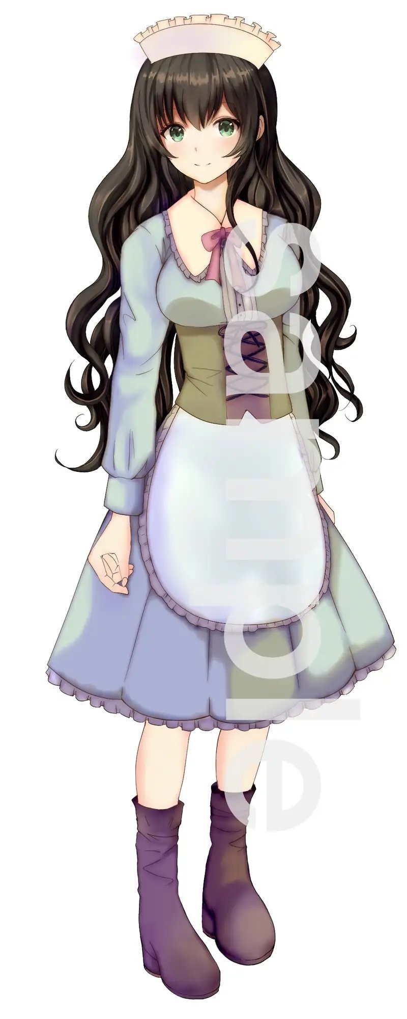 黒髪くせっ毛ロングヘアーのメイド風女の子