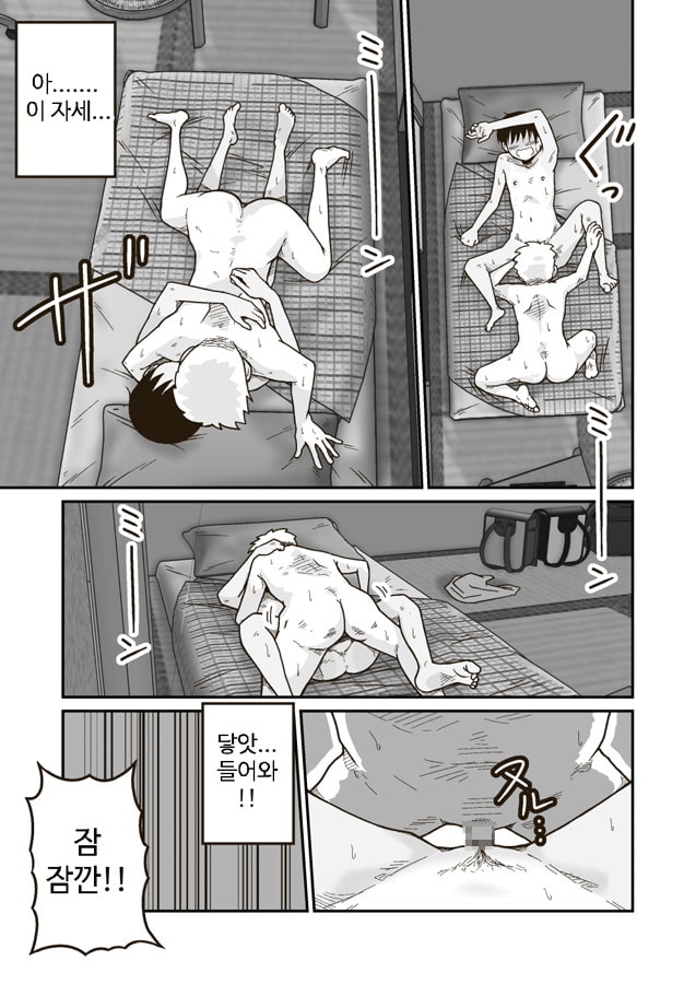 そして、気持ちを抑えられないユキオは夜、寝室で布団の上からマコトに抱きついてしまう。身体を押し付けて興奮するユキオと寝たふりでごまかすマコト。